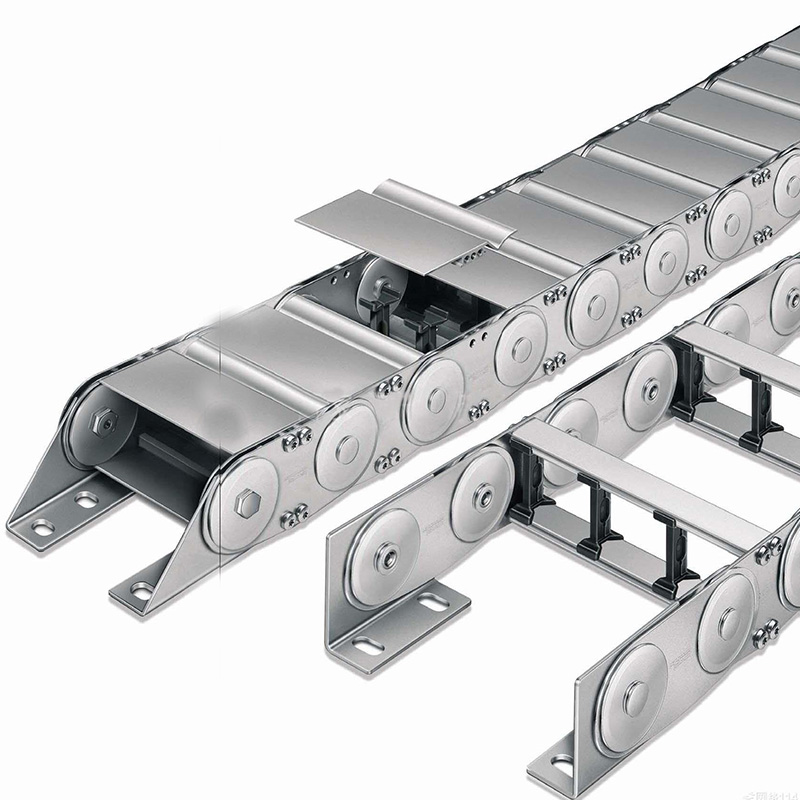 (2)钢制拖链的每一节都能打开,便于安装和维修。运动时噪音低、耐磨,可高速运动。